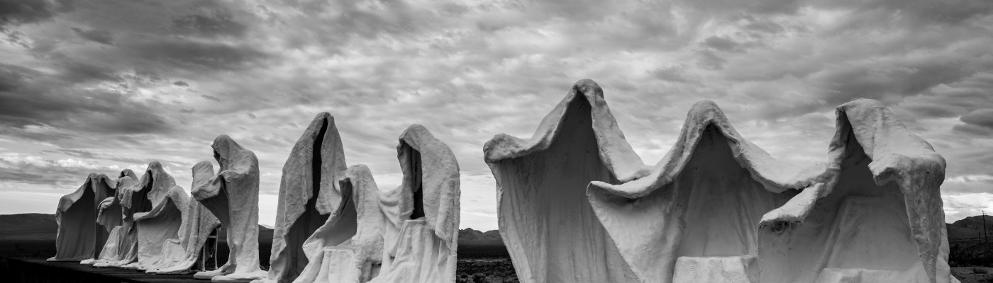 When visiting the ruins of Rhyolite, NV, photographers shouldn’t miss the Goldwell Open Air Museum which is practically walking distance from the center of the ghost town. The museum consists mainly of sculptures, the most prominent is the “Last Supper” which consists of ghostly figures arranged like the painting by Leonardo the Vinci.